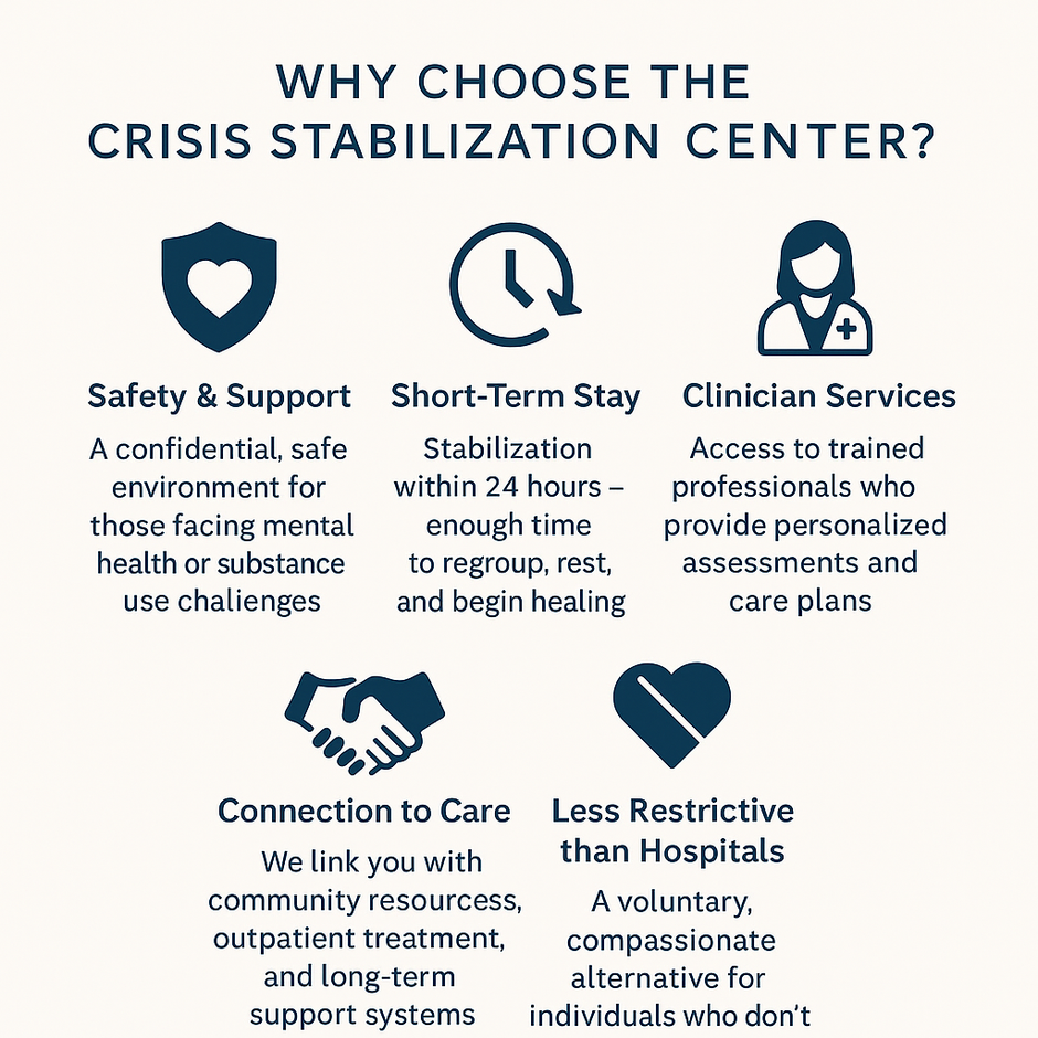 A confidential and safe environment for people in a mental health or substance use crisis.